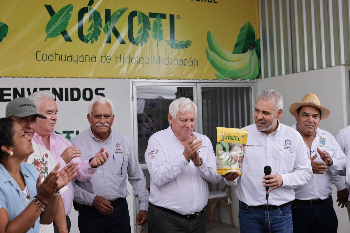Tras destacarse que a través de este complejo se aumentará hasta 10 veces más la producción de harina de plátano para consumo humano o elaboración de biofertilizante, biomasa, entre otros usos, el mandatario comentó que en Michoacán se fortalece a los pequeños productores.