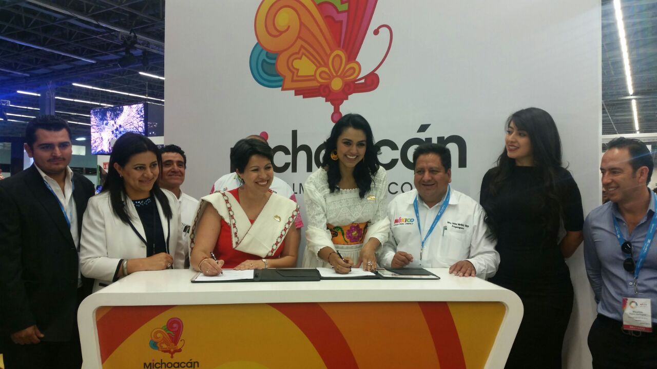 Guadalajara, Jalisco, a 26 de abril de 2016.- Michoacán y el Estado de México anunciaron el inicio formal de la unión de esfuerzos para impulsar la Ruta de los Pueblos Mineros en la región País de la Monarca. Con esta acción Michoacán abrió la primera jornada de negocios del 41° Tianguis Turístico de México.
