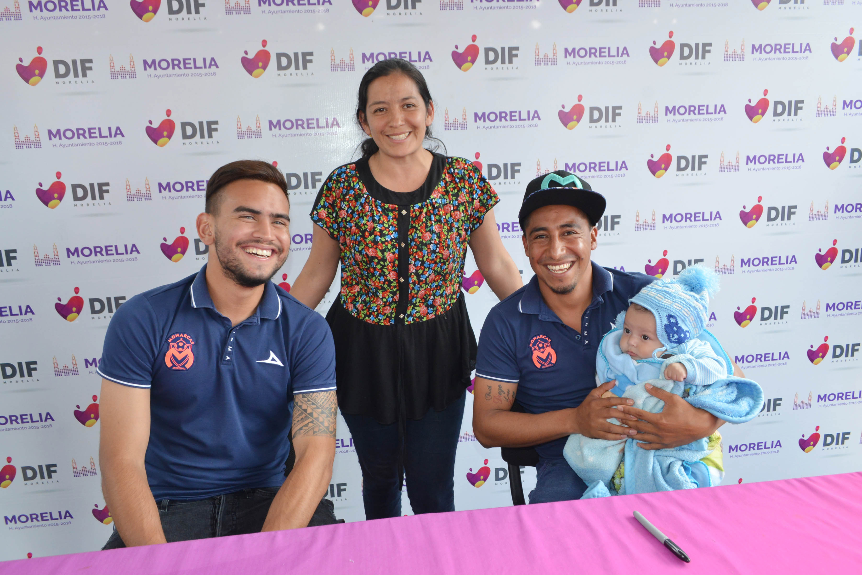 Morelia, Mich., a 17 de Noviembre de 2016.-En el marco de la colecta de cobijas «Cobijemos Morelia 2016», jugadores de Monarcas Morelia realizaron la tarde de este jueves una convivencia y firma de autógrafos para los niños y familias que acudieron a inscribirse y donar cobijas en Plaza de Armas, para apoyar al DIF Morelia.