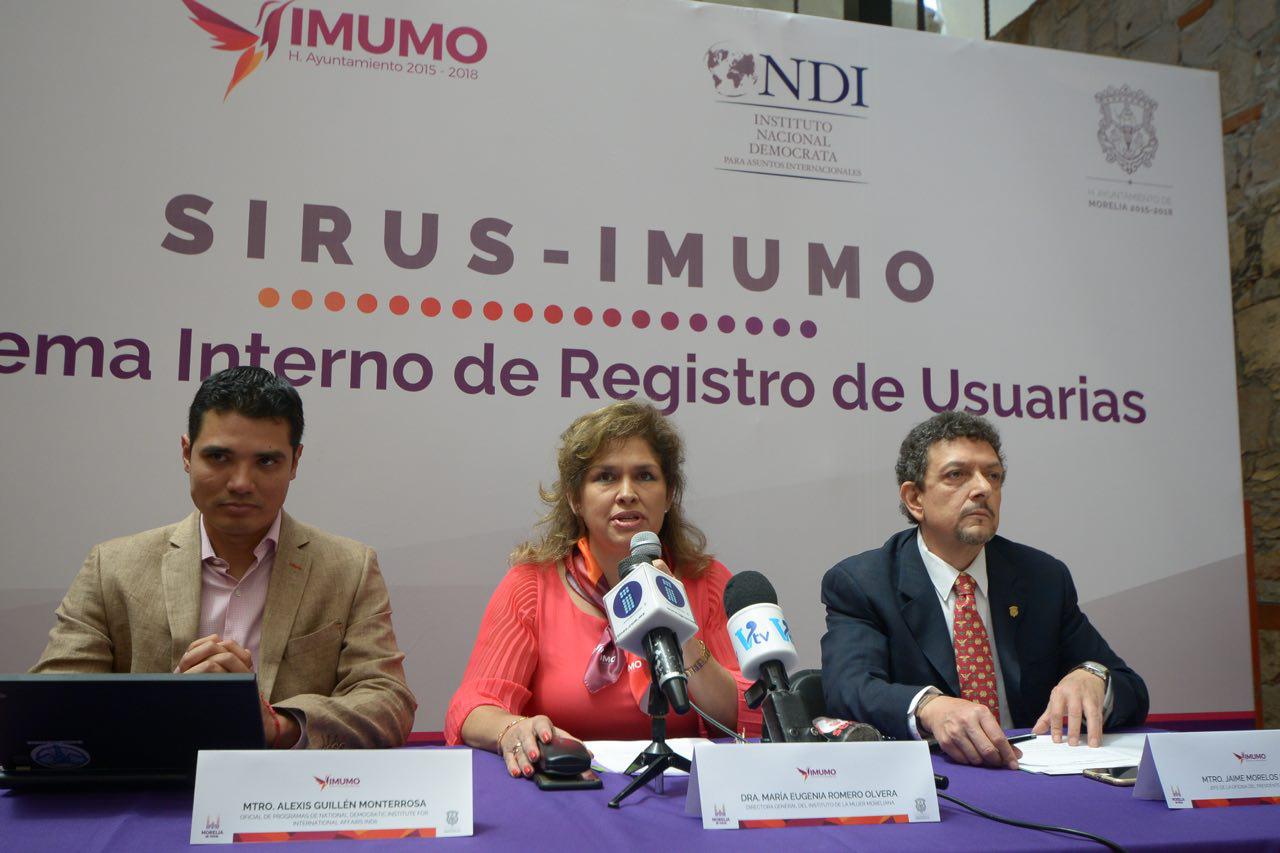 Morelia, Mich., a 31 de julio de 2017.-Al contar con un Sistema Interno de Registro de Usuarias (SIRUS) del Instituto de la Mujer Moreliana (IMUMO), la capital michoacana se posiciona como pionera a nivel estatal e incluso nacional, en la sistematización de la información y servicios de atención que ofrece, permitiendo con ello diseñar e instrumentar políticas públicas que promuevan el ejercicio pleno de los derechos de las mujeres, en especial el derecho a una vida libre de violencia.