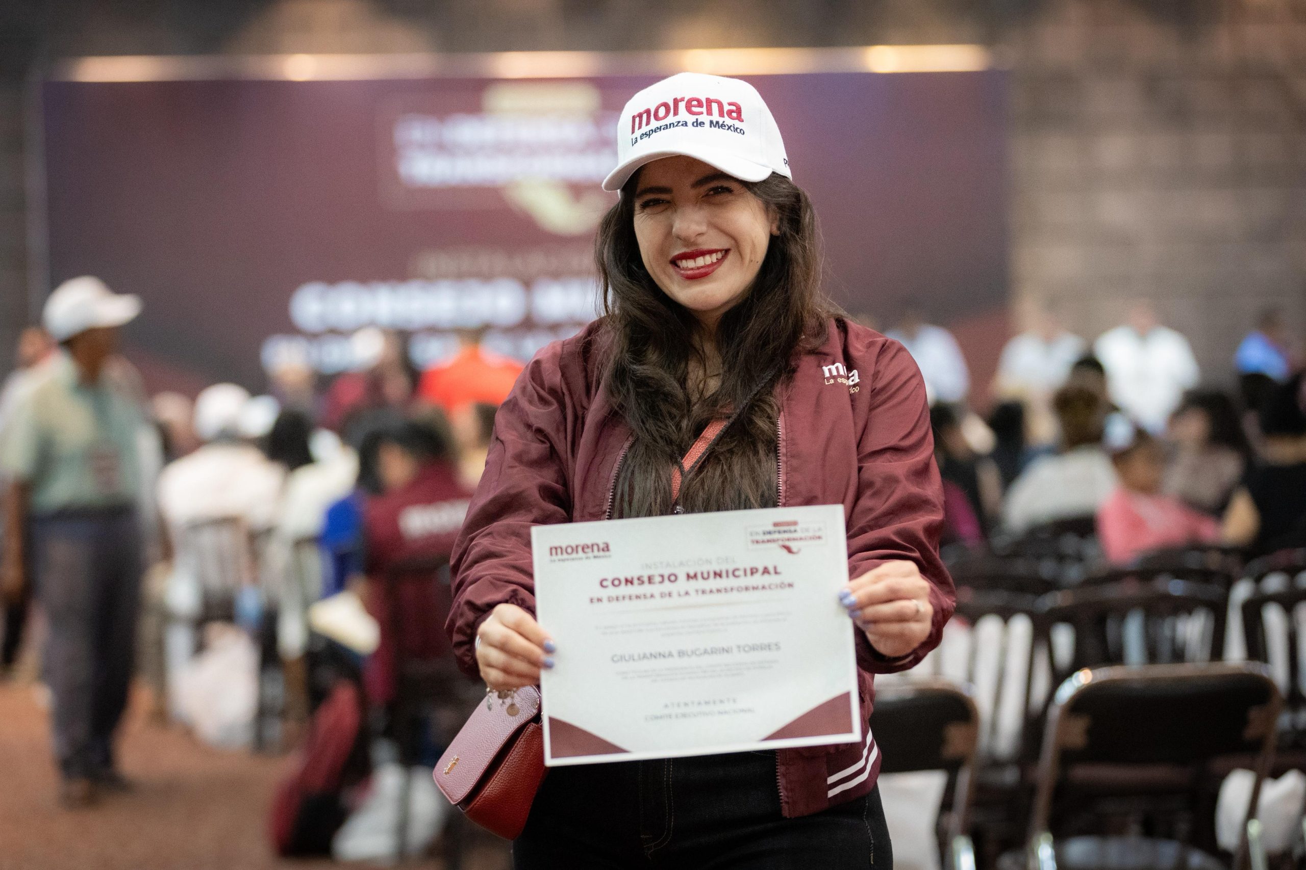 Morelia, Mich., a 19 de Abril de 2026.- En un paso clave para fortalecer la estructura territorial de Morena, Giulianna Bugarini, consejera nacional en Michoacán, tomó protesta como una de las presidentas de los comités seccionales conformados en Morelia, en el marco de la Instalación del Consejo Municipal en Defensa de la Transformación.