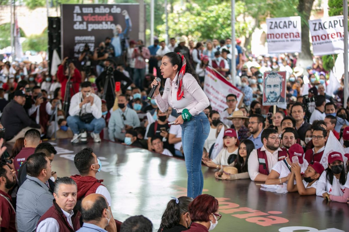 Morelia, Mich., a 27 de junio de 2022.- Por primera vez en la historia reciente de Michoacán, la entidad cuenta con un gobierno cercano a la gente, quedó demostrado durante el pasado sábado que se celebró el primer aniversario de la Victoria del Pueblo, aseveró la presidenta estatal de Morena, Giulianna Bugarini Torres.