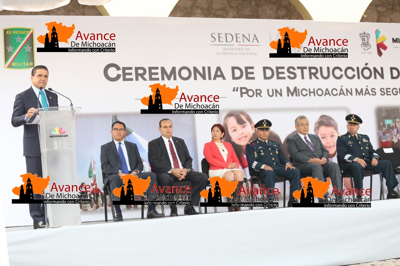 En el marco de la ceremonia con motivo de la destrucción de armamento decomisado por la Secretaría de la Defensa Nacional, Silvano Aureoles manifestó la necesidad de construir la paz, un futuro en orden y con estabilidad, por lo que refrendó su compromiso en esta materia.