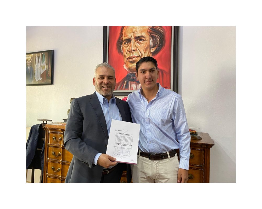 Morelia, Mich., 2 de julio de 2024.- Tras entregar el nombramiento a Lenin López García como director general del Instituto de la Juventud Michoacana (Ijumich), el mandatario Alfredo Ramírez Bedolla lo exhortó a fortalecer las acciones que realiza el Gobierno de Michoacán a favor de las y los jóvenes de la entidad.