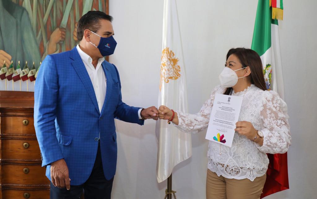 Morelia, Mich., a 2 de Marzo de 2021.- Este lunes, el Gobernador Silvano Aureoles Conejo nombró a María del Rosario Cruz García como la nueva titular del Sistema DIF Estatal.