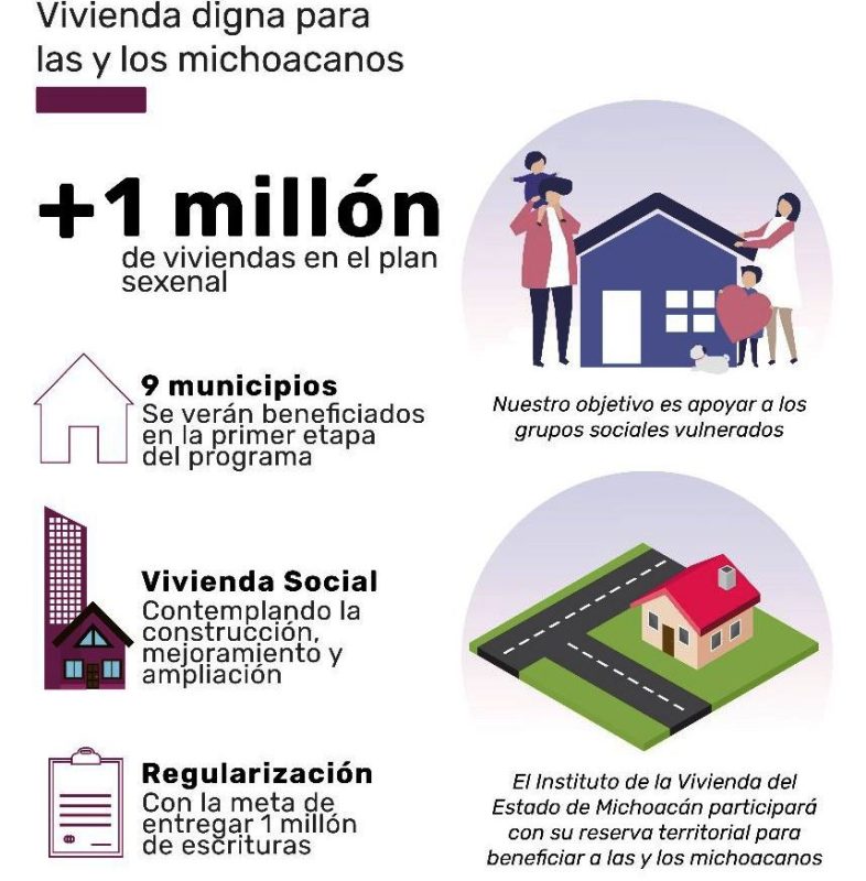 Las viviendas se edificarán en Nocupétaro, Sahuayo, Pátzcuaro, Vista Hermosa, Yurécuaro, Coeneo, Maravatío, Jiquilpan y Tarímbaro, para ello, el IVEM participará con la aportación de su reserva territorial para arrancar con la primera etapa del programa.