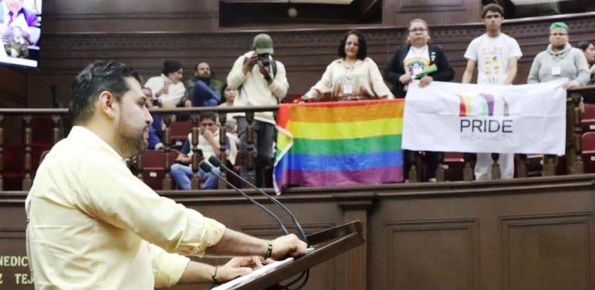 Durante su intervención, Ocampo agradeció la presencia de integrantes del colectivo PRIDE Michoacán, a quienes reconoció por su trabajo incansable en la defensa de los derechos humanos de las personas LGBTTTIAQ+.