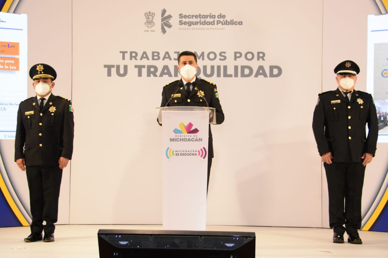 Morelia, Mich, a 24 de febrero de 2021.- La certificación de instituciones como el C5i y la profesionalización y capacitación de elementos de la Policía Michoacán han fortalecido la atención a la ciudadanía en el último año, afirmó el secretario de Seguridad Pública del Estado (SSP), Israel Patrón Reyes.