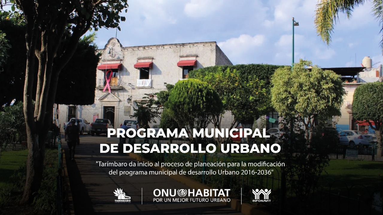 El Ayuntamiento de Tarímbaro, que encabeza el presidente, Bladimir González, cuenta con el programa vigente de desarrollo urbano 2016-2036, sin embargo, con el crecimiento metropolitano de la capital michoacana, así como los nuevos elementos que se presentan en la actualidad, como cambio climático, y nuevas leyes que entraron en vigor, el programa de la ONU-Hábitat seleccionó al municipio para el proceso de actualización.