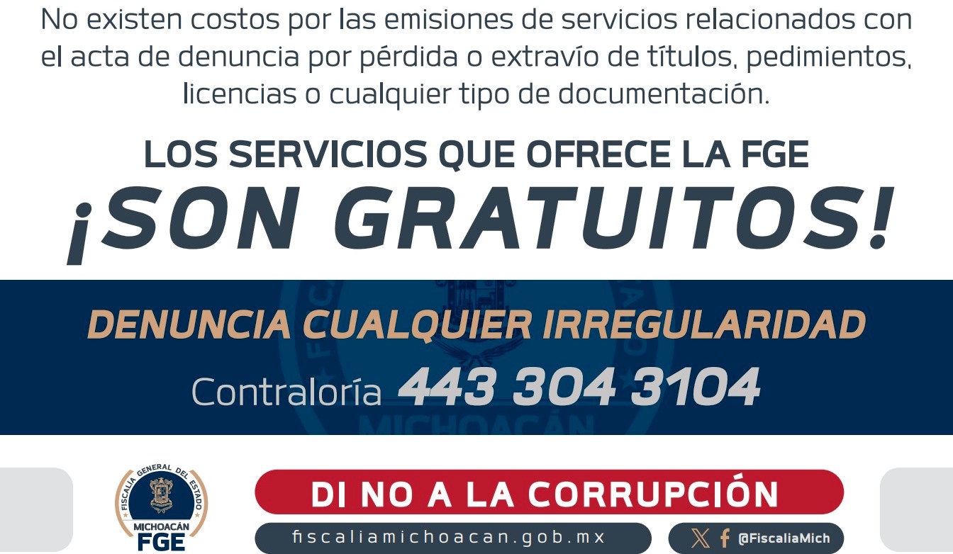 En caso de presenciar o ser víctima de un hecho contrario a la instrucción, podrá denunciarlo ante la Contraloría Interna al teléfono 4433043104, al correo electrónico contraloria@fiscaliamichoacan.gob.mx, o bien hacerlo en línea en https://contraloria.fiscaliamichoacan.gob.mx/denuncia.