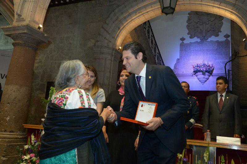 Morelia, Mich., a 10 de Julio del 2016.,- Para reconocer los méritos de personas que contribuyen a mejorar las condiciones de vida de la ciudadanía y aportar con su trabajo para la construcción de una sociedad más justa, el Ayuntamiento de Morelia que encabeza el Alcalde, Alfonso Martínez Alcázar, condecoró este domingo con la “Presea Amalia Solórzano Bravo” a Eva Castañeda Cortes y a la Asociación Mexicana de Ayuda a Niños con Cáncer.