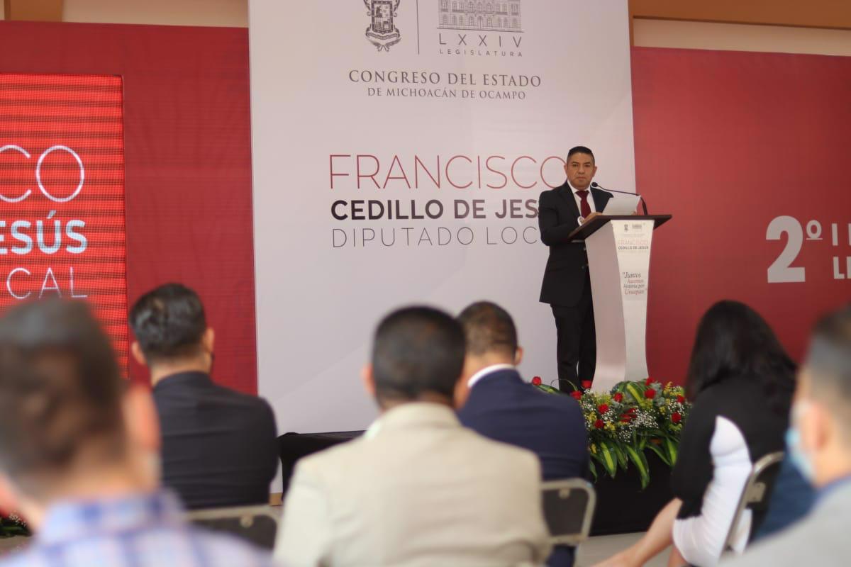 Ante Rubén Medina Niño, titular de Sedrua y representante personal del gobernador del estado, Silvano Aureoles Conejo, Francisco Cedillo sostuvo que durante su segundo año de labores presentó ante el pleno del Congreso del Estado doce iniciativas, las cuales fueron enfocadas en todo momento al mejoramiento de la calidad de vida de toda la ciudadanía.