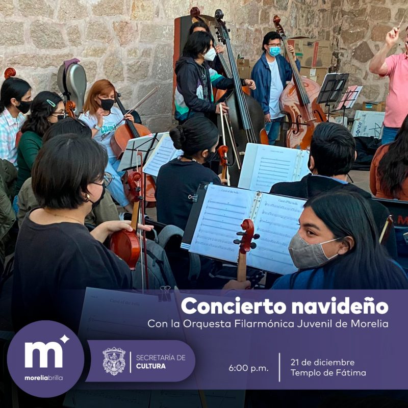 Las actividades comienzan a las 6:00 de la tarde en el Templo de Fátima con el concierto navideño que ofrecerá la Orquesta Filarmónica Juvenil de Morelia, para interpretar distintos villancicos, como “Los peces en el río”, “Burrito sabanero”, “Campanas de Belén”, “En el portal de Belén”, entre algunos otros.