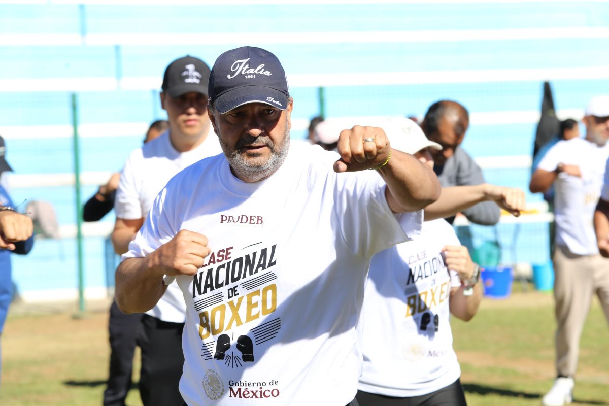 Pátzcuaro, Mich., 6 Abril de 2025.- Julio Arreola encabezó esta mañana la Clase Nacional de Boxeo “Por la Paz y Contra las Adicciones”, una actividad simultánea a nivel nacional que reunió a jóvenes, entrenadores, autoridades y ciudadanos con un solo objetivo: fomentar la actividad física como herramienta para alejar a las nuevas generaciones de los vicios y fortalecer el tejido social.