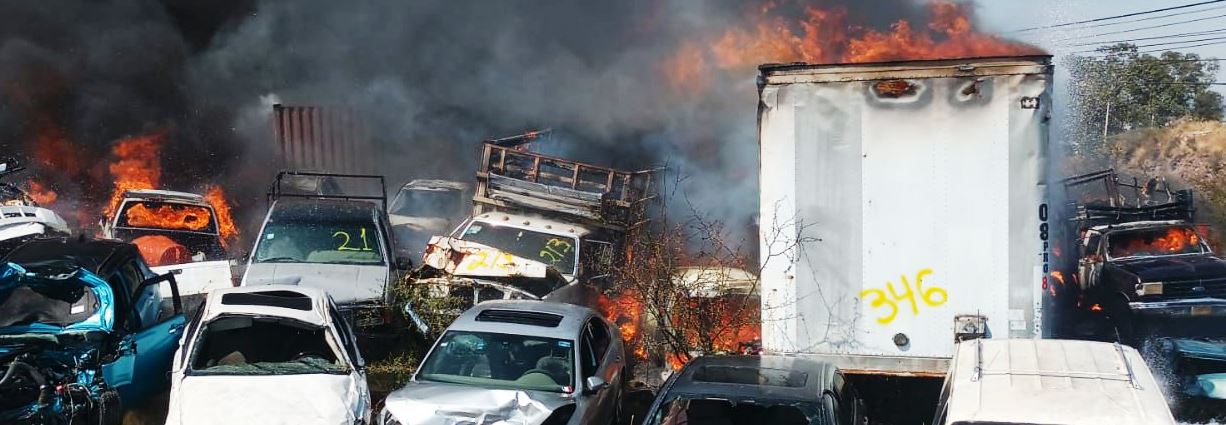 PC Estatal atiende incendio en negocio de grúas en Tarímbaro
