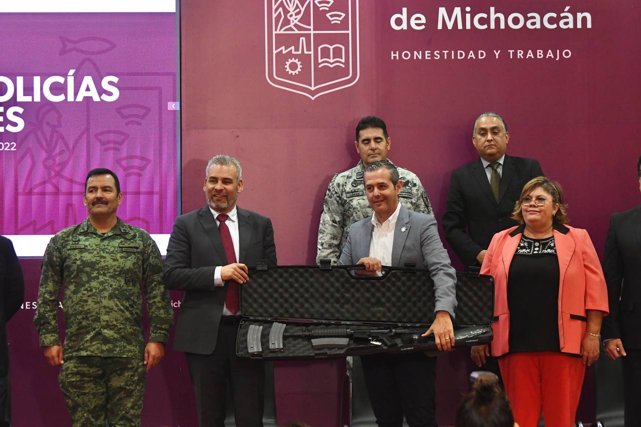La entrega consistió en 44 armas largas y 30 cortas para sumar un total de 74 unidades, que se encontraban pendientes de entrega desde hace 3 años al contar con fondos del extinto Programa de Fortalecimiento para la Seguridad (Fortaseg), por lo que concluir su proceso de recepción es otro importante paso en el camino de reforzamiento de la Policía Morelia.