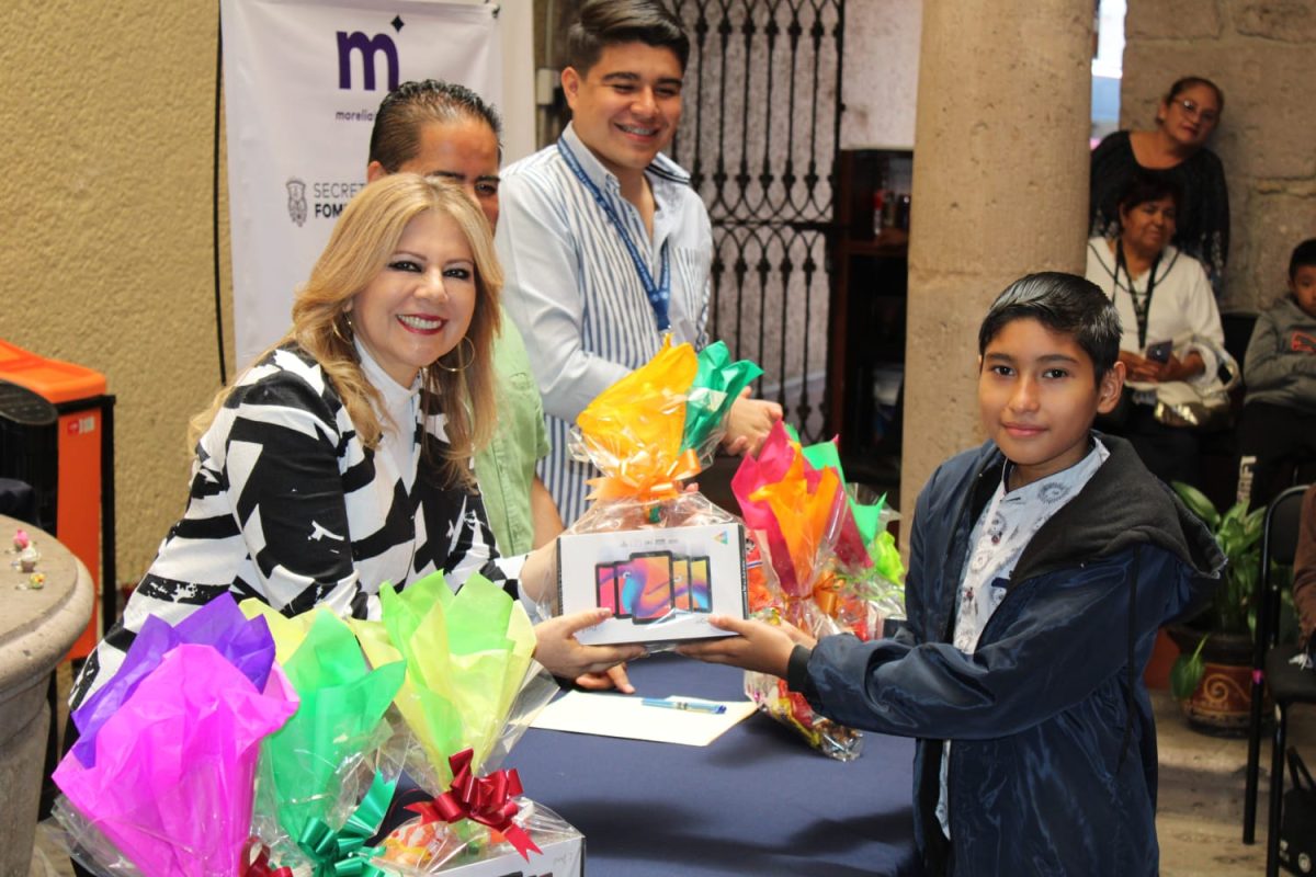 Morelia, Mich., 28 de Julio del 2023.- Con la finalidad de premiar el esfuerzo, dedicación y creatividad de las niñas y niños que han participado en el programa de Jornadas de Cultura del Ahorro, el Gobierno de Morelia que encabeza el Presidente Municipal, Alfonso Martínez Alcázar, a través de la Secretaria de Fomento Económico (SEFECO), entregó 6 tabletas a los ganadores de la dinámica de pintura y decorado de alcancías.