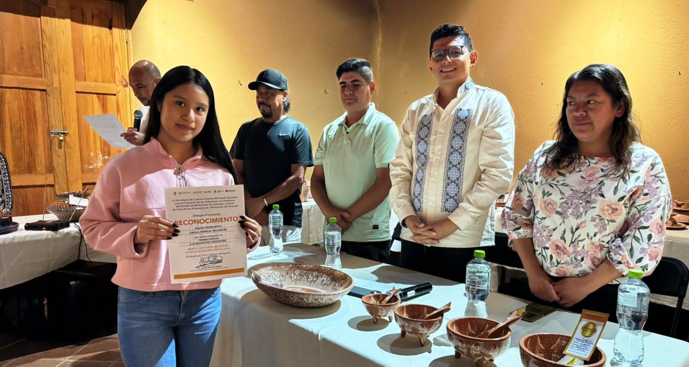 El primer lugar en la categoría de Nuevos Valores fue para Luis Jenrrih Martínez González, con una vajilla para ocho personas; María Laura Neri Espinoza, con un juego de té de siete piezas; y Concepción Paola Martínez Torres, con una cazuela molera gris rombo de peces.