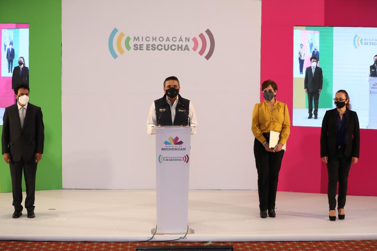En su oportunidad, la secretaria de Salud, Diana Carpio Ríos indicó que en Michoacán se está a tiempo de romper la cadena de contagios a través de la intermitencia.