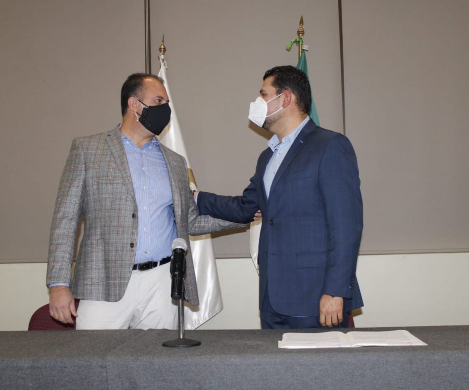 El Presidente de la CEDH, Marco Antonio Tinoco Álvarez y Themis Dánae Avilés Valencia, Coordinadora de Orientación Legal Quejas y Seguimiento de la CEDH, recibieron la queja presentada por el PRD.