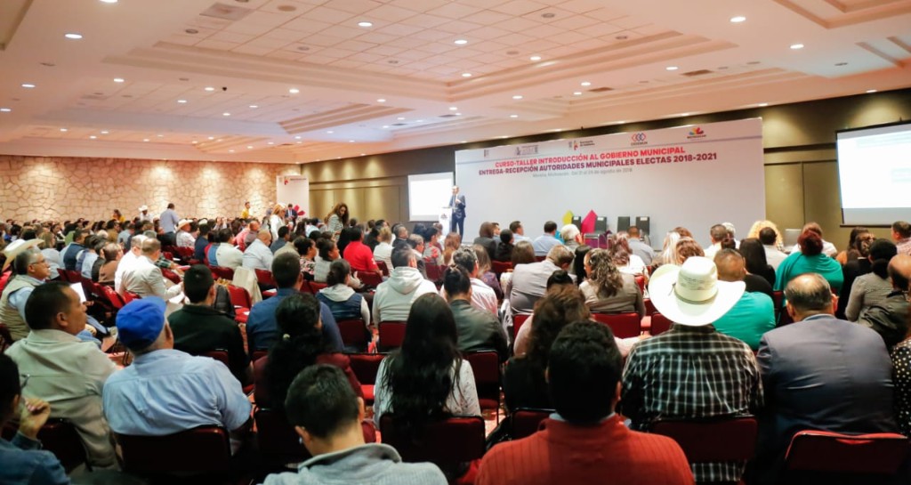 Morelia, Michoacán, a 22 de agosto de 2018.- Con el propósito de abonar al desarrollo policial en los municipios de la entidad, la Secretaría de Seguridad Pública (SSP) participó en el curso taller «Introducción al Gobierno Municipal» para presentar los beneficios del Mando Único, aspecto que permite de manera coordinada, mejorar las acciones de seguridad en el territorio michoacano.