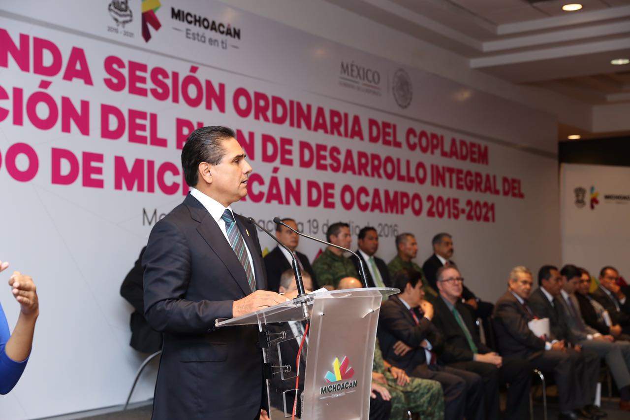 En ese tenor, hoy presentamos ante todos ustedes el Plan de Desarrollo Integral del Estado de Michoacán que habremos de ejercer a partir del año 2016 hasta el 2021 cuyos objetivos estratégicos, líneas de acción y acciones específicas, están orientadas a mover indicadores que nos contrastan con otros estados y otras naciones.