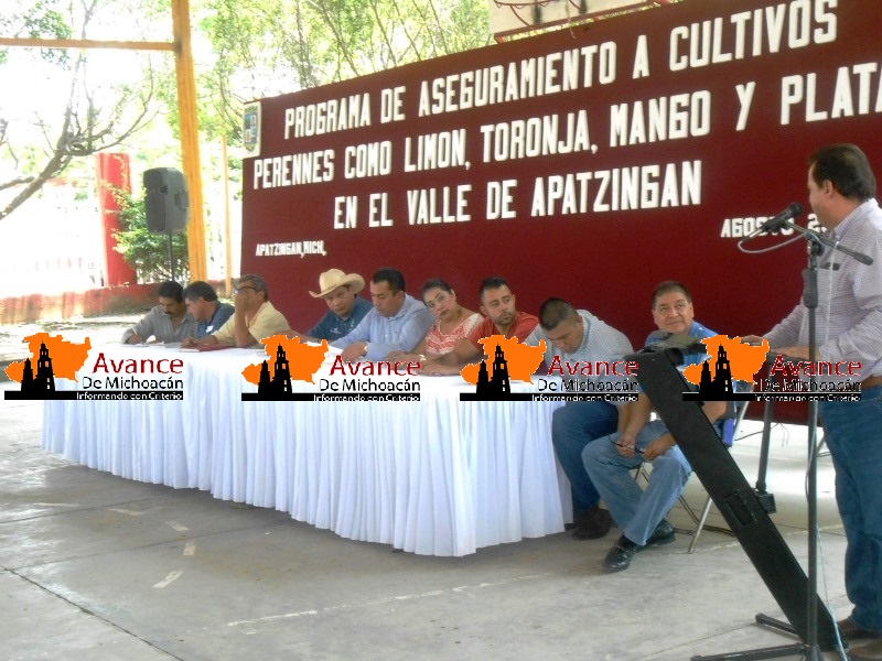Apatzingán, Mich., a 29 de agosto de 2016.- A instancias del Presidente Municipal, César Chávez Garibay, ayer a partir de la una treinta de la tarde en las instalaciones del Parque Infantil Palmira se llevó a cabo un acto mediante el cual fue presentado un Fondo de Aseguramiento para los Cultivos Agrícolas de esta región que incluye los municipios de Tingûindin, Tocumbo, Los Reyes, Peribán, Buenavista, Tepalcatepec, Aguililla, Apatzingán, Parácuaro en donde tomaron parte agricultores de diversos productos agrícolas como aguacate, caña, jitomate, limón, mango, plátano, maíz, sorgo, papaya y arroz, entre otros cultivos y frutales propios de esta zona, a los que se les instruyó acerca de los montos disponibles para asegurar sus parcelas o huertas, así como las mínimas aportaciones que deben de cubrir cuando se trate de siniestros climáticos o de otra naturaleza.