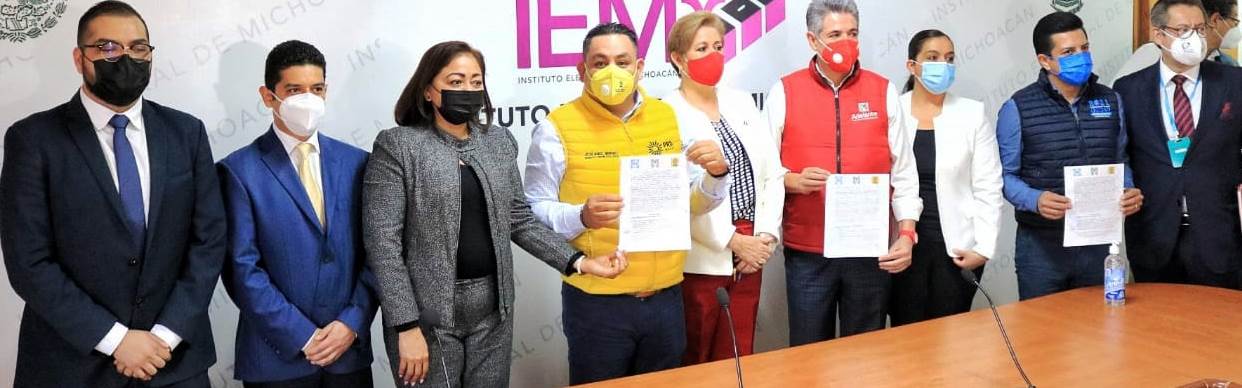 Morelia, Mich., a 11 de Diciembre 2020.- En un hecho inédito en la historia política de Michoacán, los partidos de la Revolución Democrática (PRD), Revolucionario Institucional (PRI) y Acción Nacional (PAN), presentaron hoy ante la autoridad electoral el convenio de candidatura común al Gobierno del Estado, de cara a las elecciones del 2021.