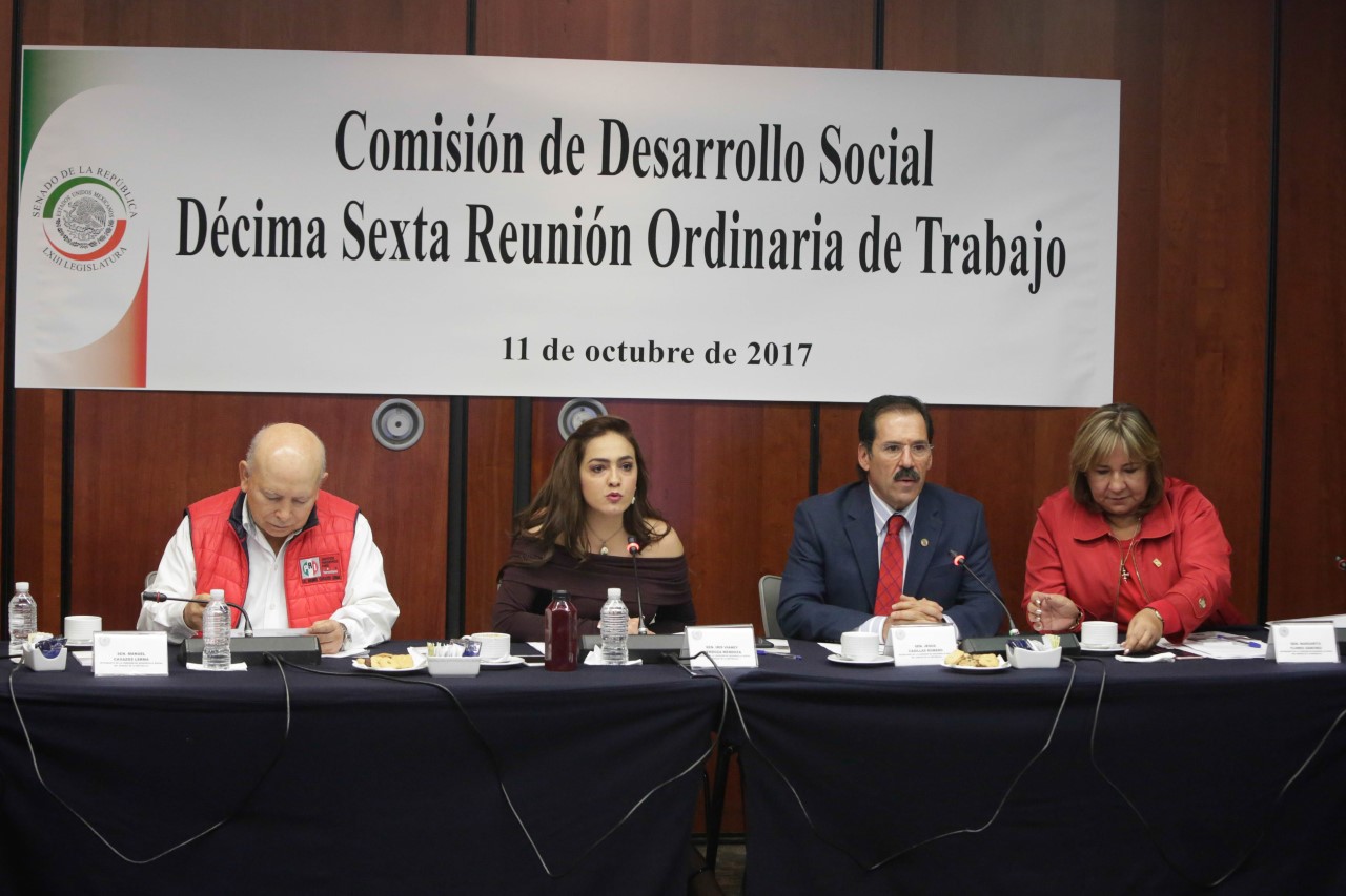 Ciudad de México, a 11 de octubre de 2017.- La senadora Iris Vianey Mendoza Mendoza presidió la Décima Sexta Reunión de la Comisión de Desarrollo Social del Senado de la República; en la que se aprobaron diversas iniciativas, dictámenes y asuntos generales; la acompañaron los senadores Jesús Casillas, Margarita Flores, Yolanda de la Torre, Manuel Cavazos Lerma, Sofío Ramírez, Rabindranath Salazar Solorio y la senadora Luz María Beristaín.
