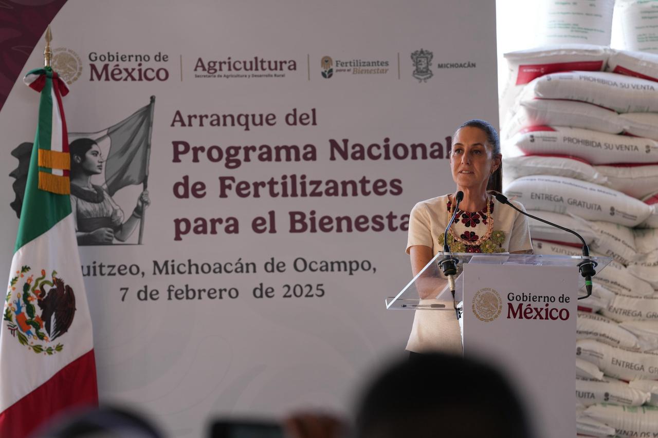 Cuitzeo, Mich., a 7 de Febrero del 2025.- La Presidenta de México, Claudia Sheinbaum Pardo, anunció que en Michoacán el programa Cosechando Soberanía arrancará en marzo, esto durante la entrega de Fertilizantes para el Bienestar en el municipio de Cuitzeo en beneficio de 74 mil 252 productores y productoras del campo.