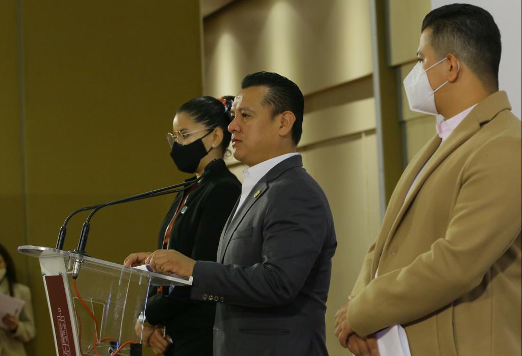 En la conferencia de prensa estuvieron presentes el secretario de Gobierno, Carlos Torres Piña y el diputado Víctor Hugo Zurita Ortiz.