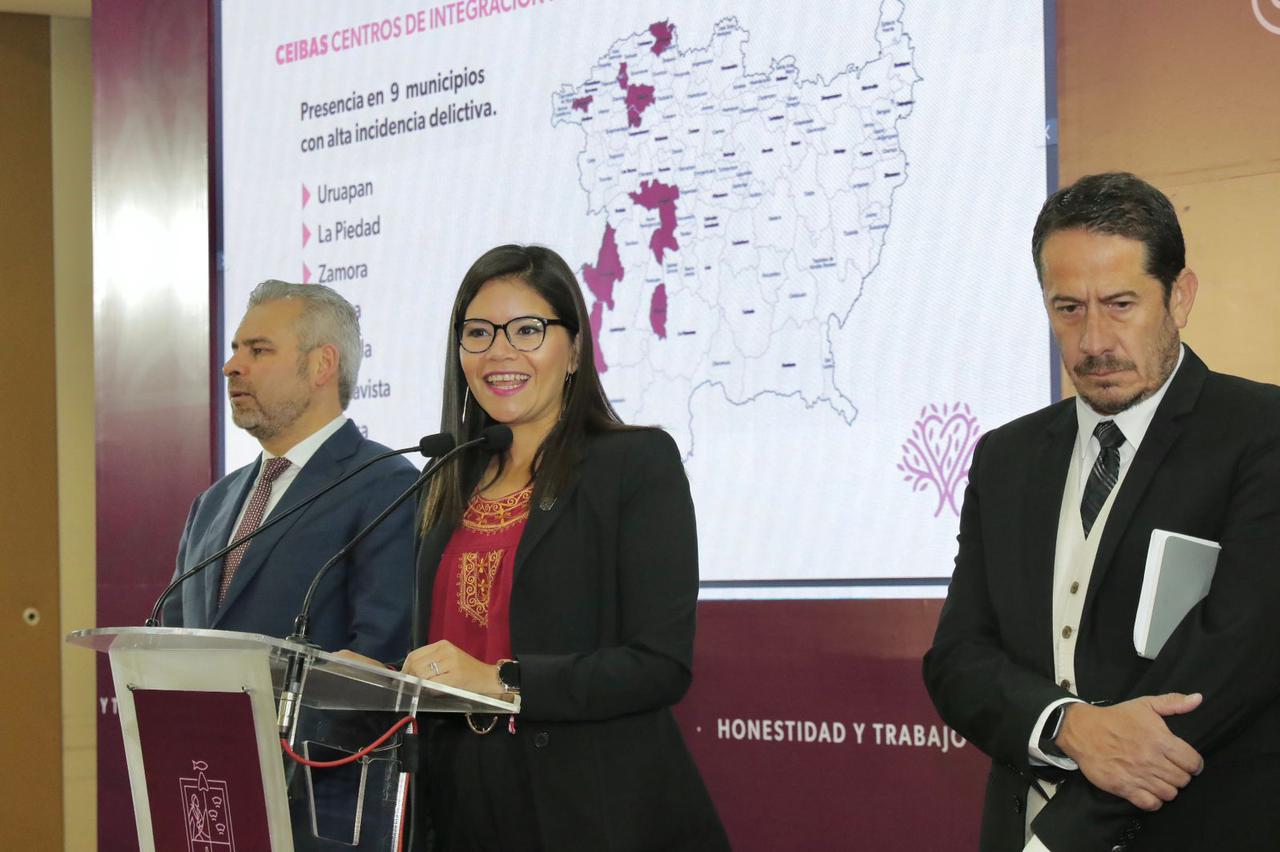 Asimismo, expuso sobre los Centros de Integración para el Bienestar y la Armonía Social (Ceibas) con presencia en los municipios de: Uruapan, Zamora, La Piedad, Jacona, Aguililla, Múgica, Ixtlán, Sahuayo, y próximos a inaugurarse en La Ruana y Buenavista.