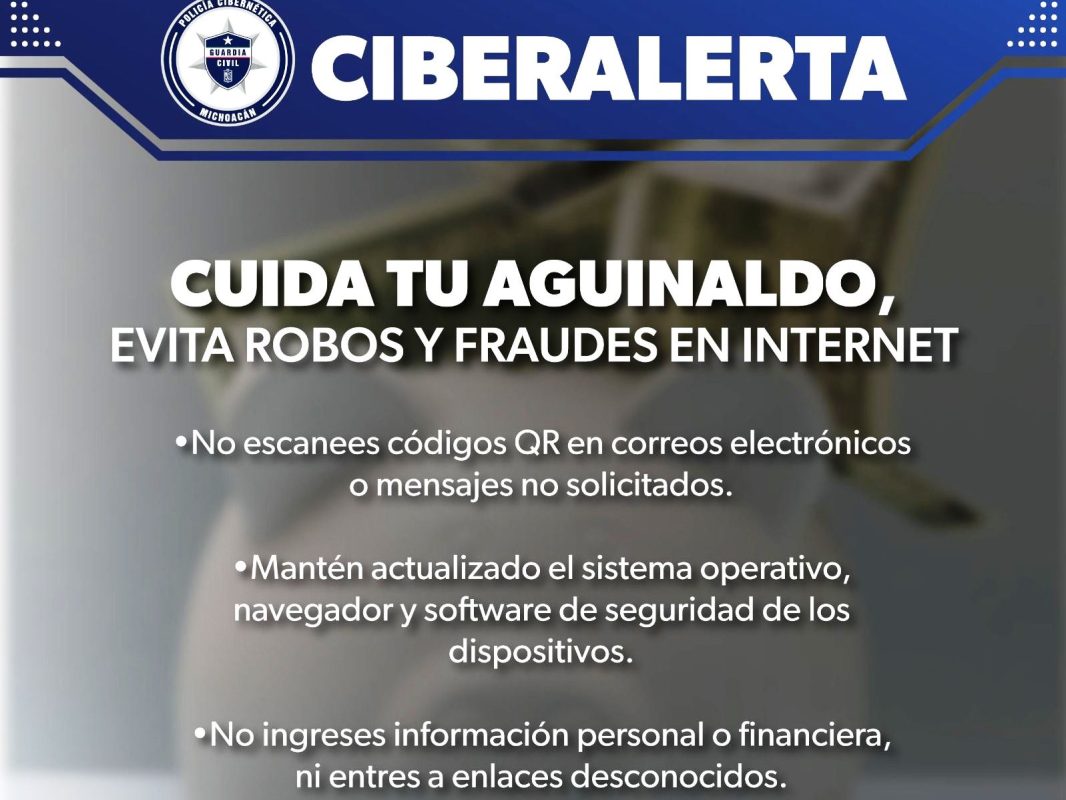 Morelia, Mich, 20 de Diciembre de 2024.- El comercio electrónico es uno de los principales canales para adquirir regalos durante la temporada navideña, periodo en el que incrementan los ciberdelitos. La Secretaría de Seguridad Pública (SSP) lanza la campaña Antifraude Cibernético, con el fin de ayudar a las y los usuarios a prevenir que se conviertan en cibervíctimas.