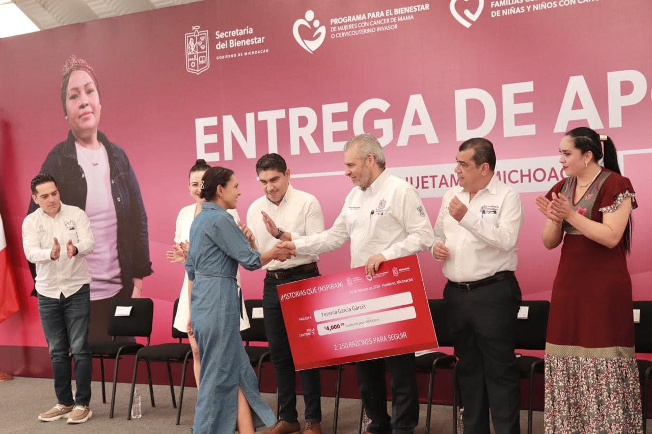 Morelia, Mich., 26 de junio de 2024.- El próximo viernes 28 de junio el Gobierno de Michoacán reiniciará la entrega de apoyos económicos a beneficiarias del programa Mujeres con Cáncer de Mama y/o Cervicouterino Invasor, de 18 a 64 años de edad, anunció la secretaria del Bienestar, Andrea Janet Serna Hernández.
