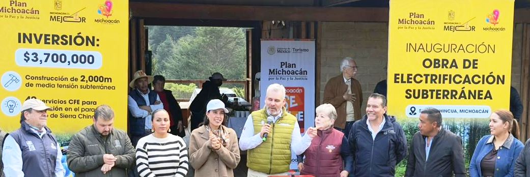 Angangueo, Mich, 24 de Noviembre de 2025.- La obra de electricidad subterránea en Sierra Chincua fue concluida y oficialmente inaugurada este fin de semana pasado, durante la ceremonia de apertura de los Santuarios de la Mariposa Monarca en Michoacán, informó la Secretaría de Turismo del estado (Sectur).