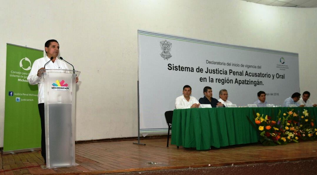 Déjenme decirles que parecía difícil que Michoacán llegara a este punto por el rezago que veníamos arrastrando, pero quiero reconocer el esfuerzo, la dedicación de servidoras, servidores públicos comprometidos, destaco el caso de en su momento, presidente del Supremo Tribunal, magistrado Juan Antonio Magaña, que le puso todo el empeño para que esto pudiera culminar. Que juntos nos tocó ya en el inicio de mi responsabilidad frente al Gobierno, poner en marcha este nuevo Sistema en algunas regiones del estado, particularmente destaco el caso de Zamora y junto con ello también, no solamente avanzar en los pasos, en los tiempos establecidos por la Constitución y la Ley, sino también transitar rápido y pronto en el mejoramiento de la infraestructura para tener condiciones adecuadas una vez iniciados los juicios orales y así pudimos entregar el ala norte del Supremo Tribunal de Justicia en Morelia, las salas de juicios orales en Pátzcuaro, en Ario de Rosales y en Zamora.