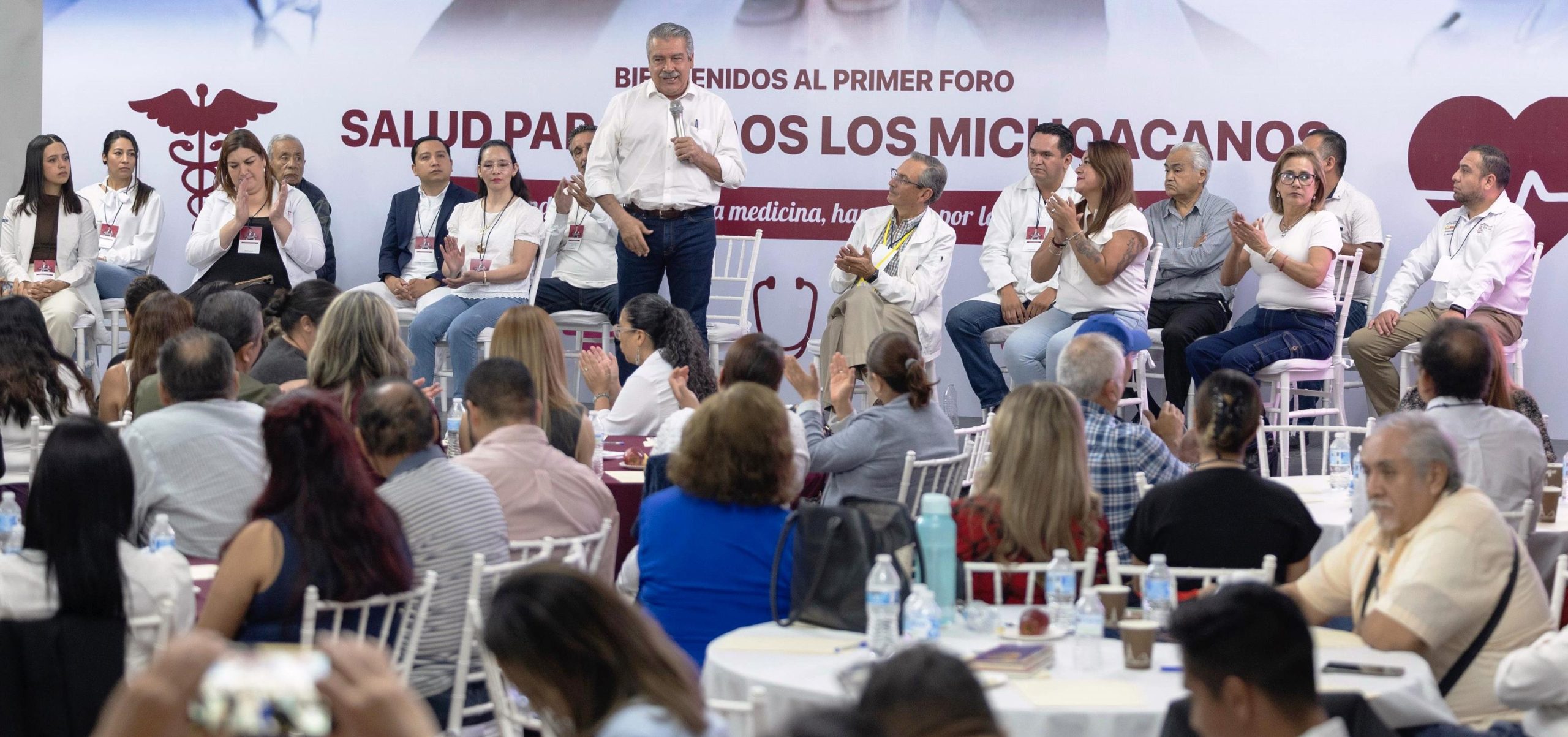 Morón, fue el invitado especial en el Primer Foro «Salud para todos los michoacanos», en donde médicos, enfermeros, trabajadores administrativos, investigadores e integrantes en general de todas las áreas de la Salud, participaron para exponer propuestas que permitan el avance del sector.
