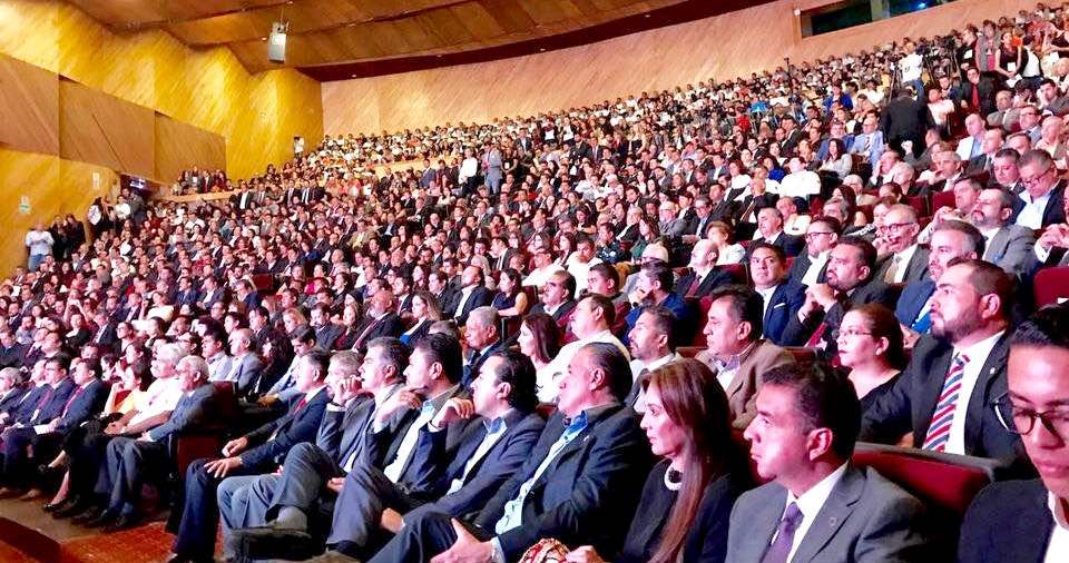 Morelia, Mich., a 14 de Agosto del 2019.- El recinto como se ilustra en la gráfica, estuvo repleto de amigos, compañeros de partido, empleados de primer y segundo nivel del gobierno local y políticos de cúpula pero el 80 por ciento de fuera de la municipalidad sin la presencia de líderes sociales, de comerciantes, de colonias, comunidades o ejidos, es el Primer Informe de Gobierno de Raúl Morón Orozco , alcalde moreliano.