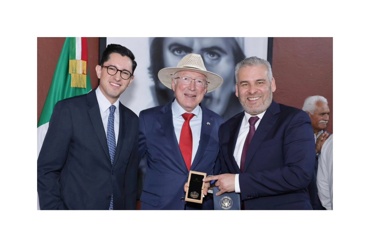 Morelia, Mich., 24 de junio de 2024.- Tras la reunión encabezada por el gobernador Alfredo Ramírez Bedolla con el embajador de Estados Unidos en México, Ken Salazar, se acordó la implementación de un modelo de seguridad que operará de manera permanente para los inspectores del Servicio de Sanidad Animal y Vegetal (Aphis), del departamento de Agricultura de Estados Unidos, encargados de certificar los frutos, luego de que el pasado viernes se reanudó la certificación de aguacate y mango.
