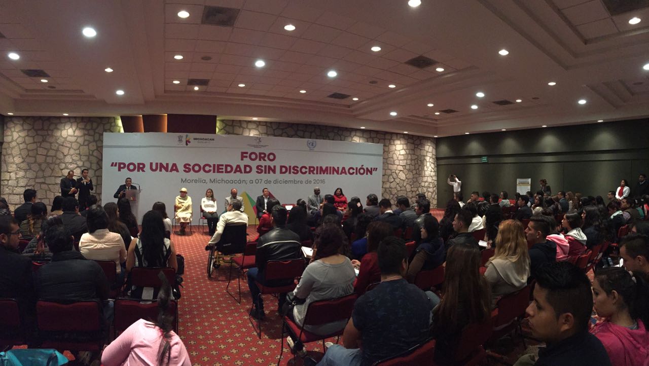 Morelia, Mich., Con la finalidad de trabajar a favor de una cultura de inclusión y la no discriminación de las personas con discapacidad y grupos vulnerables, el Consejo Estatal para Prevenir y Eliminar la Discriminación y la Violencia (COEPREDV ), en Michoacán llevó a cabo el foro denominado «Por una Sociedad sin Discriminación» en Casa de Gobierno.
