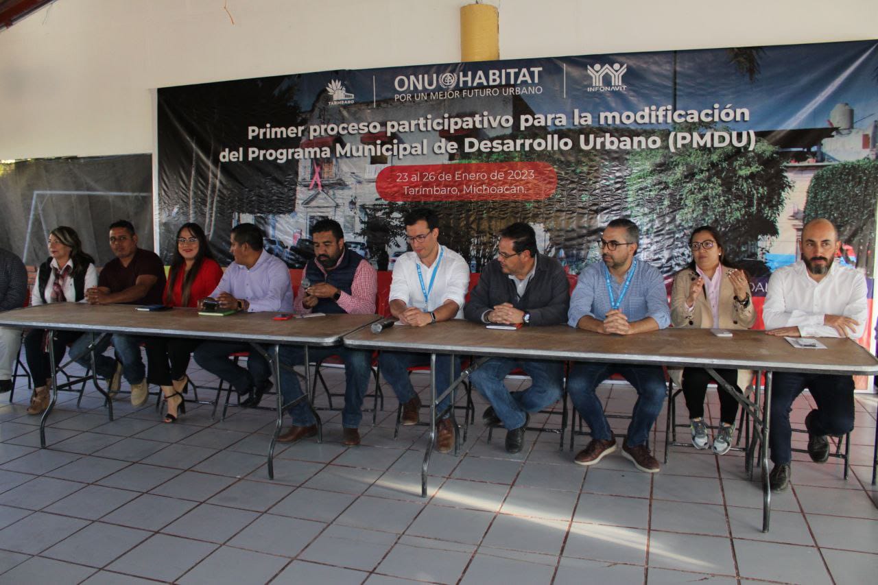 Morelia, Mich., 23 de Enero de 2023.- En la visita al municipio de Tarímbaro por parte de representantes de la ONU – Hábitat México y el Infonavit, como parte del primer proceso participativo para la modificación del Programa Municipal de Desarrollo Urbano (PMDU), se realizó un taller de diagnóstico del municipio con integrantes del Ayuntamiento, para conocer la situación actual y poder generar instrumentos de planeación y desarrollo urbano.