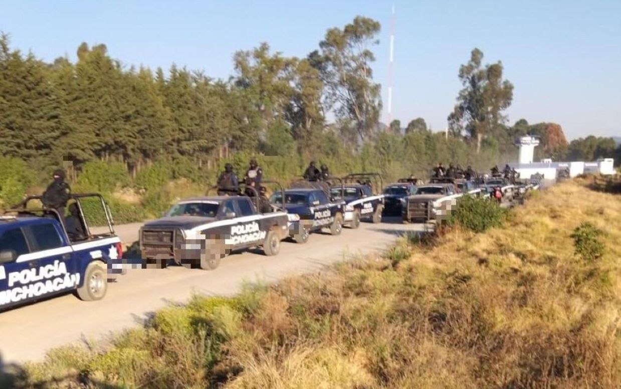 Con patrullajes terrestres y aéreos, los agentes de la Policía Michoacán mantienen labores de búsqueda y localización de los agentes policiales en un amplio perímetro de la zona.