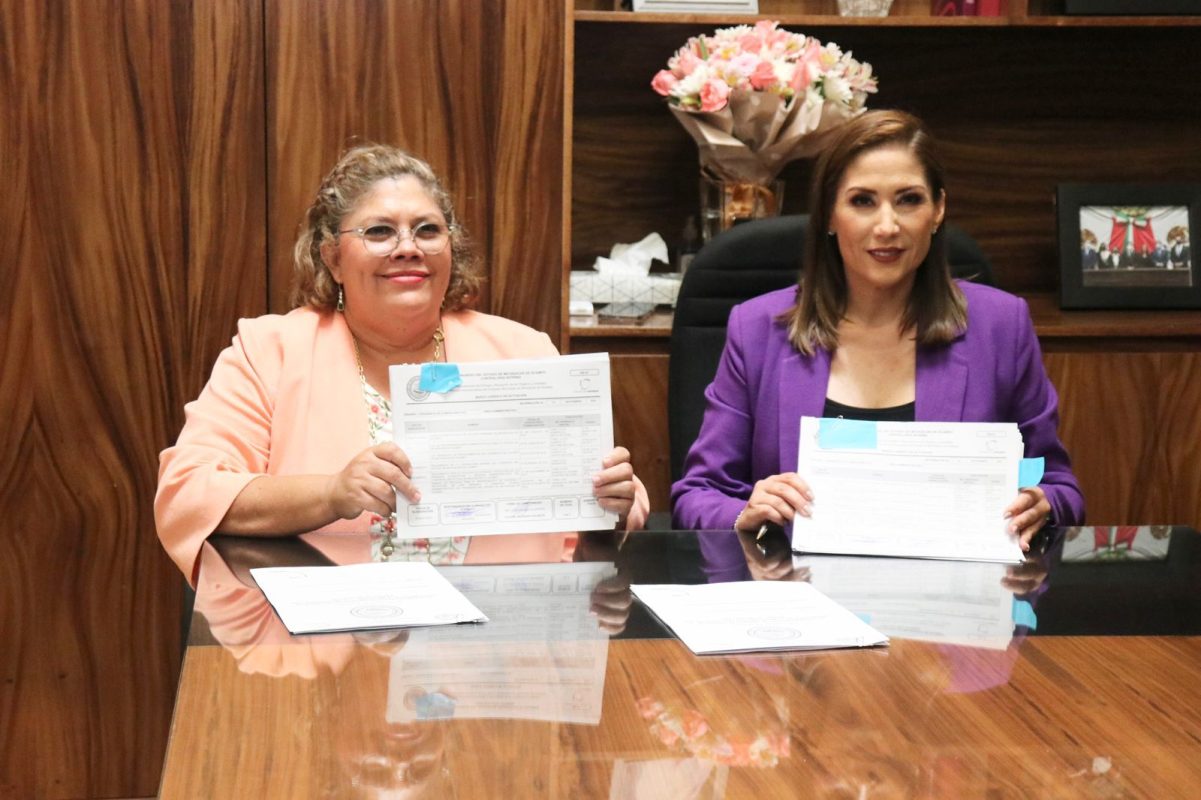 Morelia, Mich , , a 27 de Septiembre del 2023.- En un acto institucional y respetuoso, las diputadas Laura Ivonne Pantoja Abascal, presidenta electa para el Tercer Año Legislativo, y Julieta García Zepeda, presidenta saliente, protocolizaron la entrega-recepción de la Mesa Directiva del Congreso del Estado de Michoacán.
