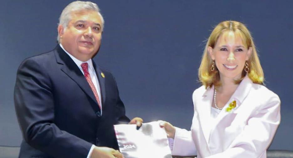 Morelia, Mich, a 25 de Febrero de 2025.- El Presidente de la Mesa Directiva del Congreso del Estado, Juan Antonio Magaña de la Mora recibió de manos de la Presidenta del Tribunal en Materia Anticorrupción y Administrativa, Lizett Puebla Solórzano, el Informe de Labores 2024, del que dijo, estima, muestra resultados exitosos.
