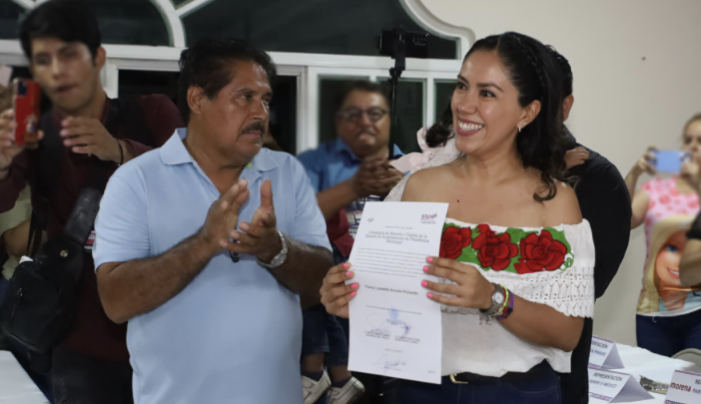 Arropada por el pueblo de Apatzingán y acompañada de la planilla que conformará el siguiente cabildo municipal, Fanny Arreola recibió por parte del Instituto Electoral de Michoacán (IEM) en el Consejo Electoral Municipal de Apatzingán, la constancia de mayoría.