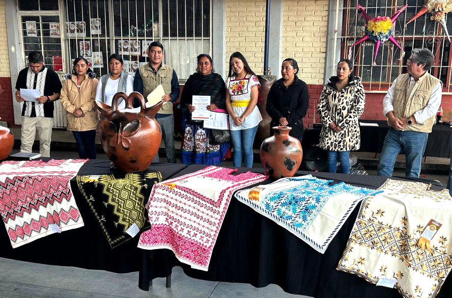 En textil de algodón bordado que son guanengos y vestidos, se reconoció a Adelaida Blas Ángeles, Ma. Claudia Santos Ascencio, Ana Rosa Hernández Joaquín, Ma. Natividad Marcelo Francisco, Ma. Esmeralda Santos Remigio, Albertina Molina Remigio, Magdalena Joaquín Francisco, Carmen Joaquín Ascencio y Ma. Guadalupe Pasaye Pascual.