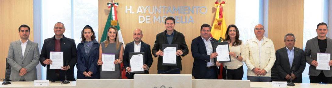 Morelia, Mich.,15 de Enero de 2025. – Con un reconocimiento a la administración del Presidente Alfonso Martínez Alcázar, por su compromiso con el desarrollo de Morelia, la Cámara Mexicana de la Industria de la Construcción (CMIC) y el Gobierno Municipal firmaron un convenio de colaboración para seguir dirigiendo recursos a acciones para la ciudadanía moreliana.