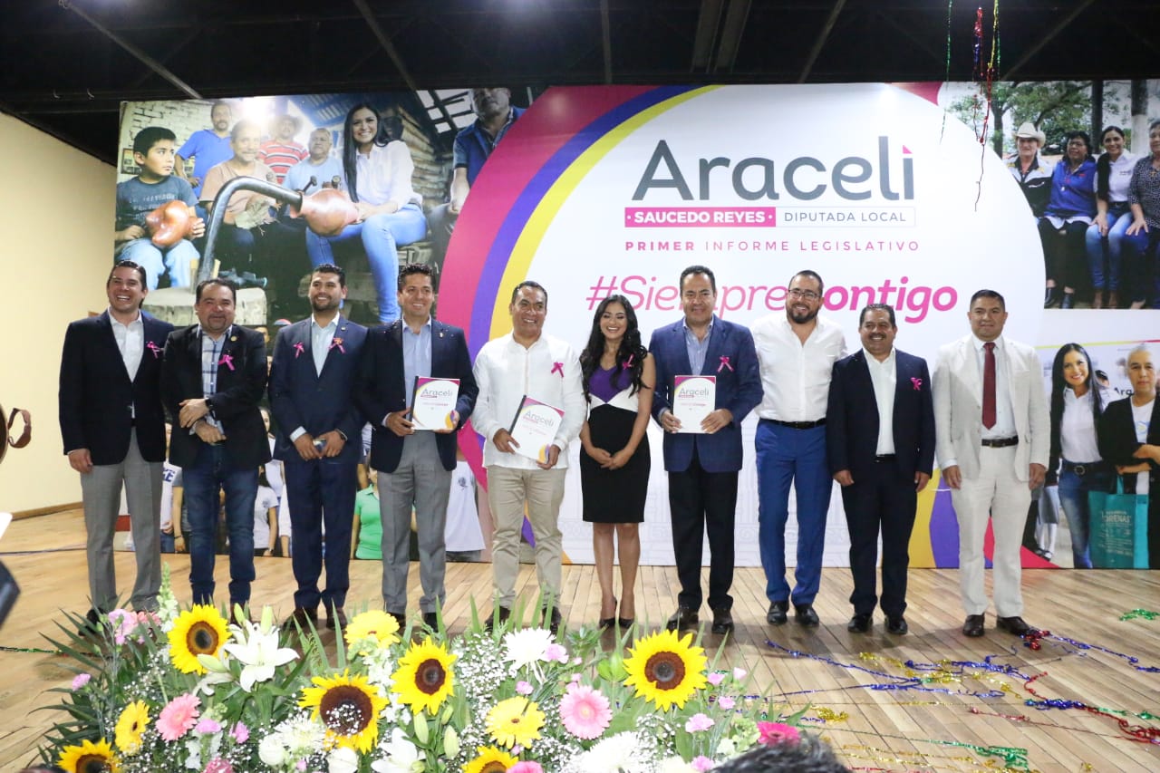 Salvador Escalante, Mich., a 28 de Septiembre del 2019.,- Los diputados del Grupo Parlamentario del PRD en la LXXIV Legislatura Local, reconocieron el trabajo y liderazgo de su coordinadora Araceli Saucedo Reyes, en el marco de la presentación de su primer informe de labores.