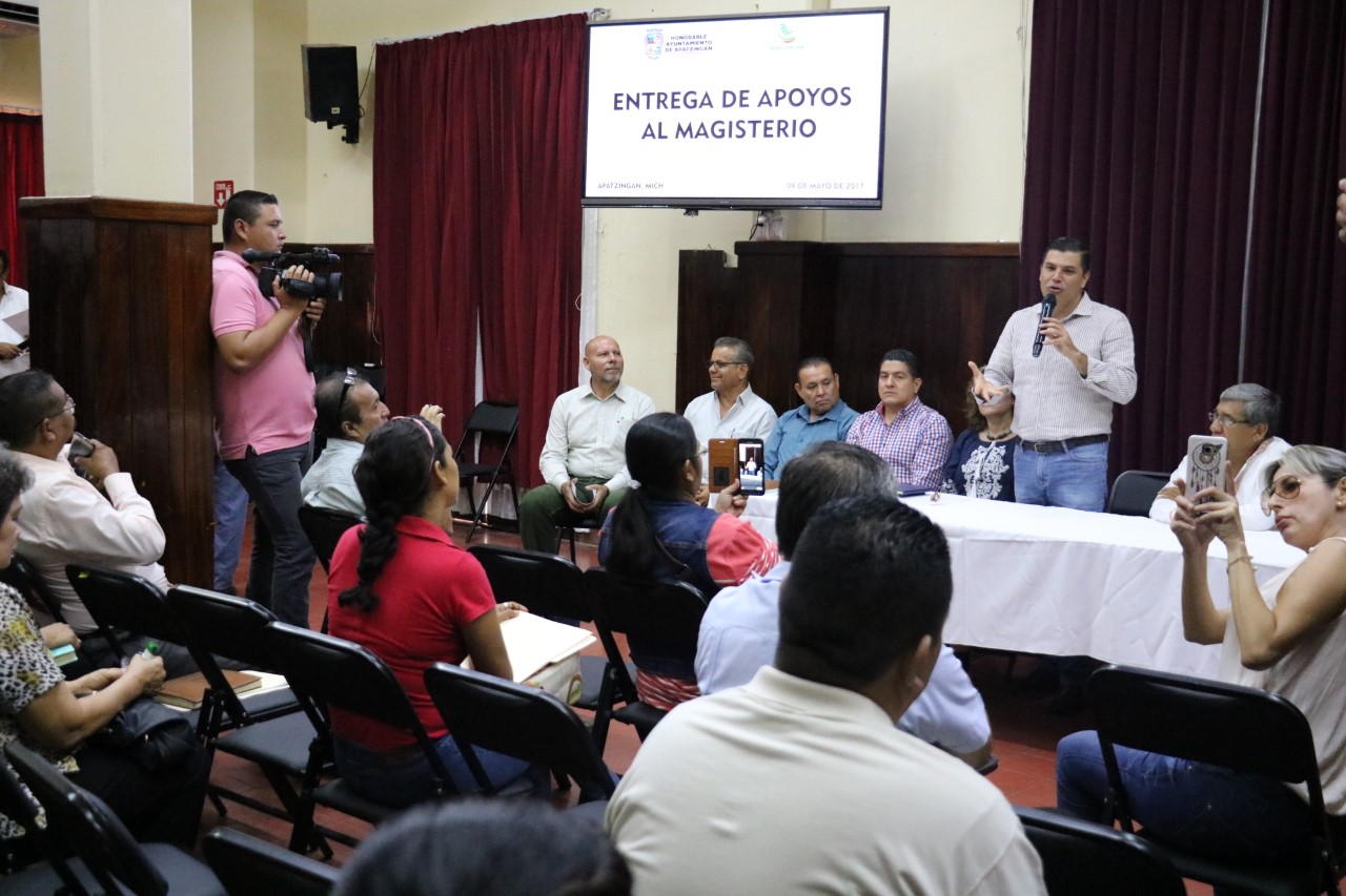 Apatzingán, Mich.- Al reconocer la labor que desempeñan los docentes para formar a las nuevas generaciones, el presidente municipal, César Chávez Garibay, entregó estímulos económicos para 27 zonas escolares, entre éstas preescolares; primarias; secundarias generales; secundarias técnicas; telesecundarias, así como el Centro de Atención Múltiple, Cendi y Capep.