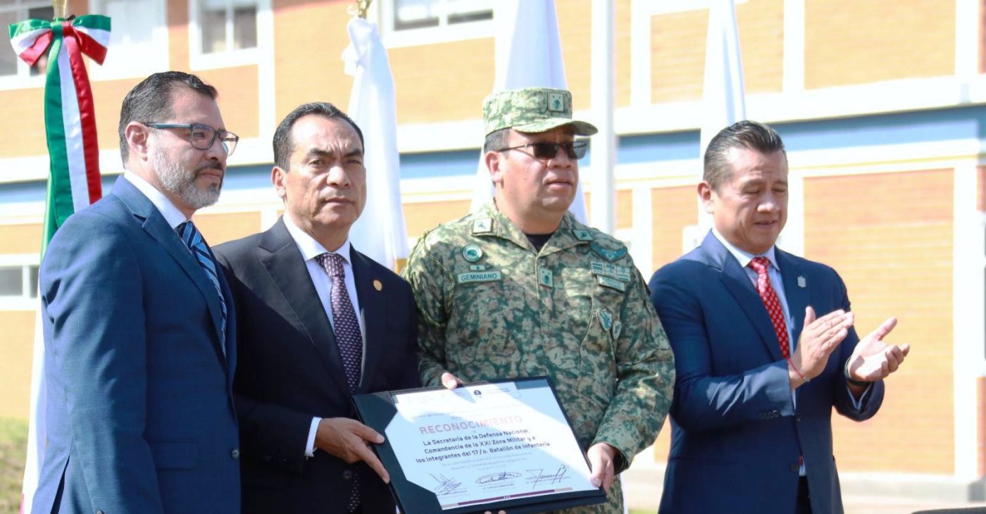Durante la ceremonia en la que fueron condecorados 103 elementos, también se reconoció el esfuerzo de Enrique Hernández Cisneros, Coordinador Estatal de la Guardia Nacional y Ernesto Joaquín Geminiano Jiménez, General de Brigada Diplomado de Estado de Mayor de la Secretaría de la Defensa Nacional.